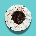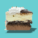A classic ice cream cake—taken to the next level. Layers of creamy vanilla and chocolate ice cream surround a thick ribbon of rich chocolate fudge and our signature crunchy chocolate pieces. Finished with smooth whipped vanilla buttercream, colorful rainbow sprinkles, and a drizzle of hot fudge on top.