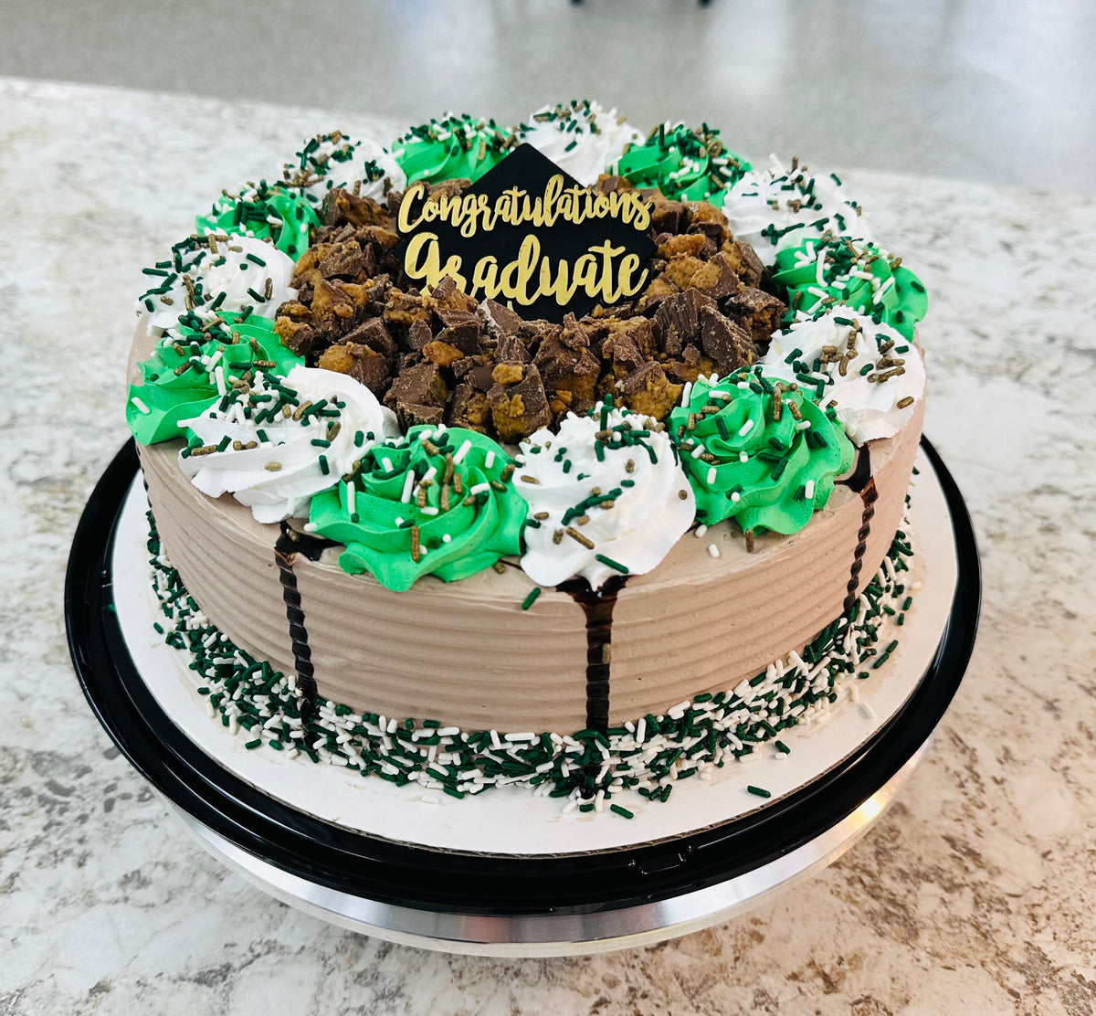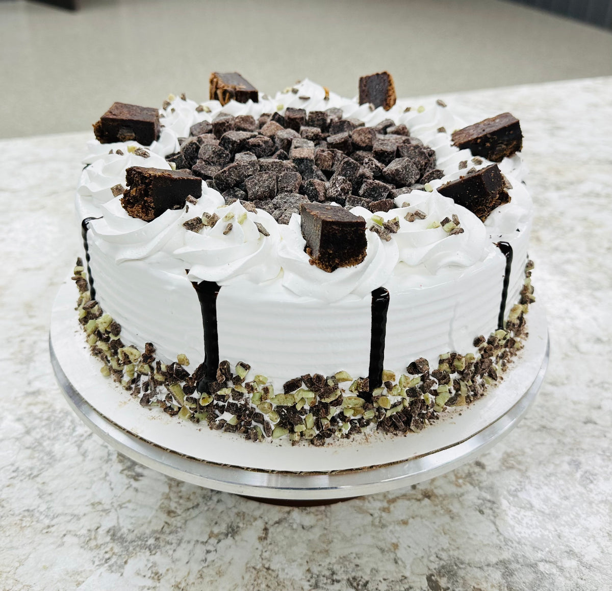 Every ice cream cake is thoughtfully crafted, assembled, and decorated by hand in our shop. We take immense pride in creating a memorable experience, whether you're celebrating a special milestone or simply craving a delicious dessert.