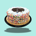 Celebrate in the sweetest way with layers of birthday cake ice cream and fluffy yellow cake, all frosted with creamy vanilla buttercream and swirled with rainbow sprinkles inside. A smooth layer of vanilla ice cream adds extra indulgence, while the entire cake is coated in a blanket of rainbow sprinkles and finished with a drizzle of rich fudge on top. Colorful, festive, and delicious—this cake is a party in every slice!