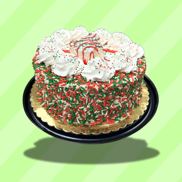 Celebrate the season with our festive Tree Cake Ice Cream Cake — a holiday classic transformed into a frozen delight! This cake layers fluffy yellow cake with our rich, tree-cake–infused ice cream, swirled with Christmas sprinkles for the perfect pop of color and cheer. It’s finished with creamy vanilla buttercream that’s smooth, sweet, and beautifully nostalgic. Every slice tastes like a Christmas morning treat — joyful, cozy, and irresistibly delicious.